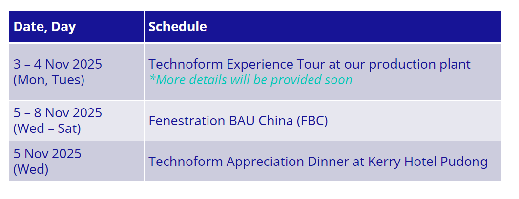 We’re excited to invite you to Fenestration BAU China (FBC), Asia's biggest fenestration exhibition, taking place in Shanghai this year!